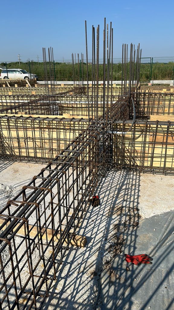 - fundatii de tip grinzi continue, din beton armat, dispuse pe doua directii, rezemate pe blocuri din beton nearmat;